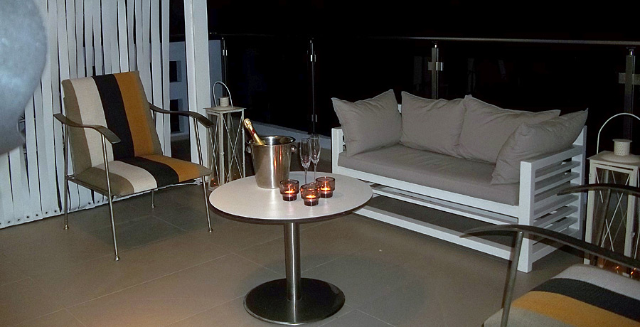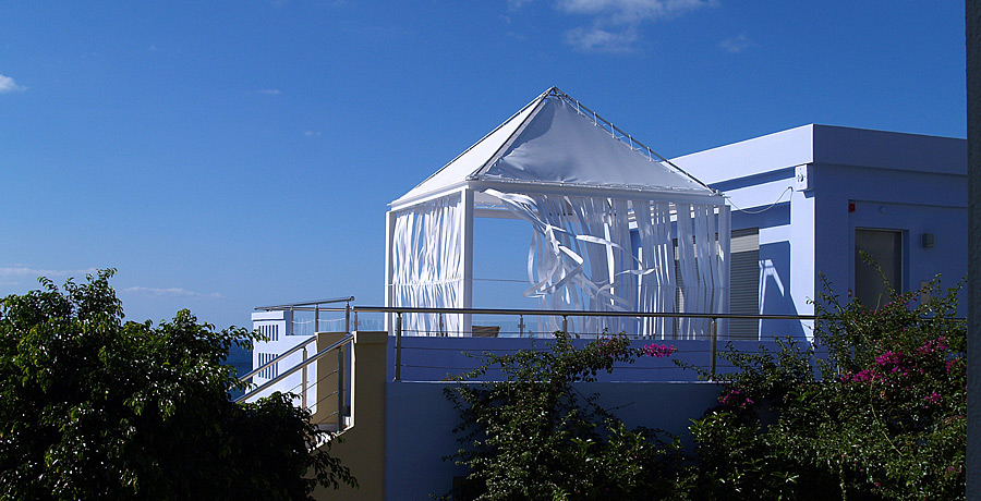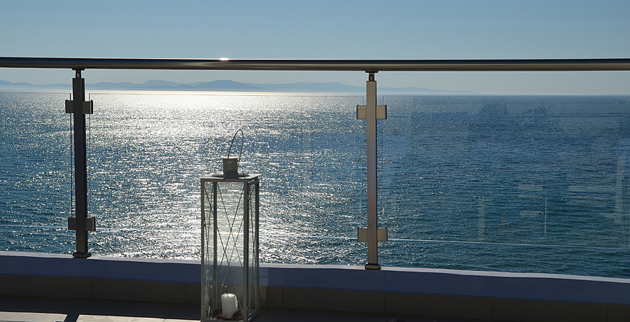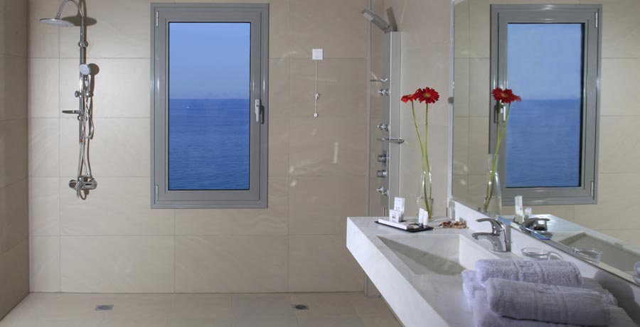 Το επιβλητικό παράθυρο απέναντι από το υπέρδιπλο κρεβάτι σε ταξιδεύει στη θάλασσα. Στη μεγάλη βεράντα της ξεδιπλώνεται η σαγήνη του τοπίου.
